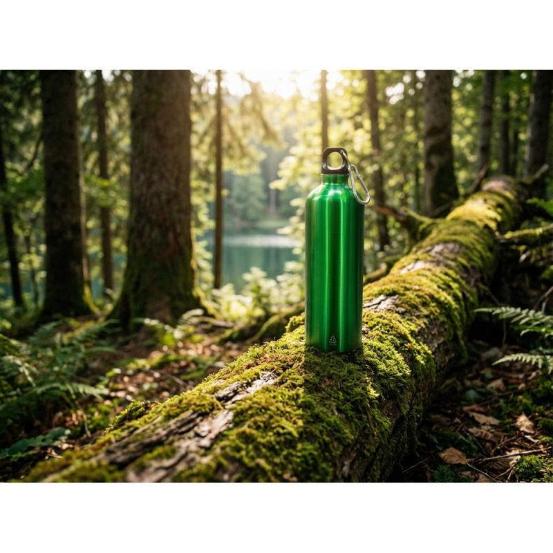 Butelka sportowa 750 ml z karabińczykiem umożliwiającym przypinanie, zalecana wyłącznie do zimnej wody, błyszczące wykończenie, produkt wykonany ze stali nierdzewnej z recyklingu