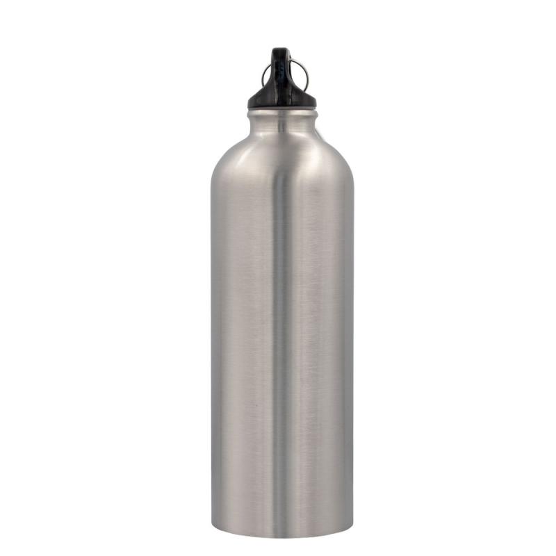 Butelka sportowa 750 ml z karabińczykiem umożliwiającym przypinanie, zalecana wyłącznie do zimnej wody, błyszczące wykończenie, produkt wykonany ze stali nierdzewnej z recyklingu