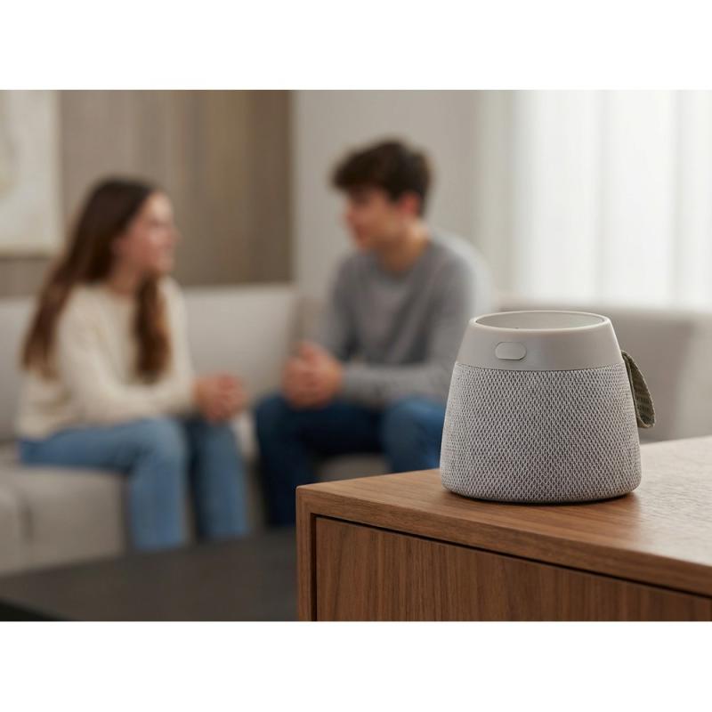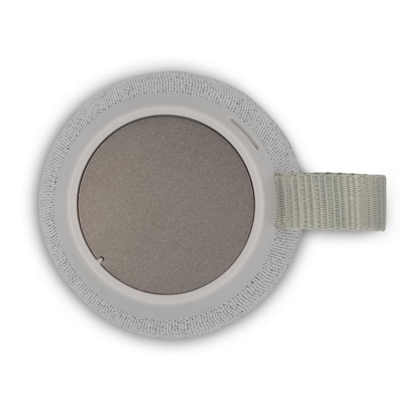 Głośnik bezprzewodowy 5W z wbudowanym magnesem w podstawie, umożliwiający stabilne mocowanie do metalowych powierzchni, kompaktowa obudowa z dolną blaszką przeznaczoną pod grawer, idealny do odtwarzania muzyki w podróży i na biurku, ładowany przez USB-C