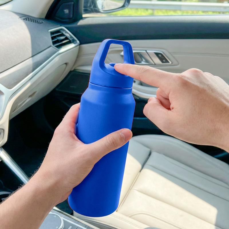 Kubek termiczny 530 ml Air Gifts z otwieraniem na klik, zakrętką w kolorze produktu i praktycznym uchwytem. Podwójne ścianki pomagają ograniczyć wpływ temperatury zewnętrznej na napój. Przeznaczony do zimnych, niegazowanych napojów