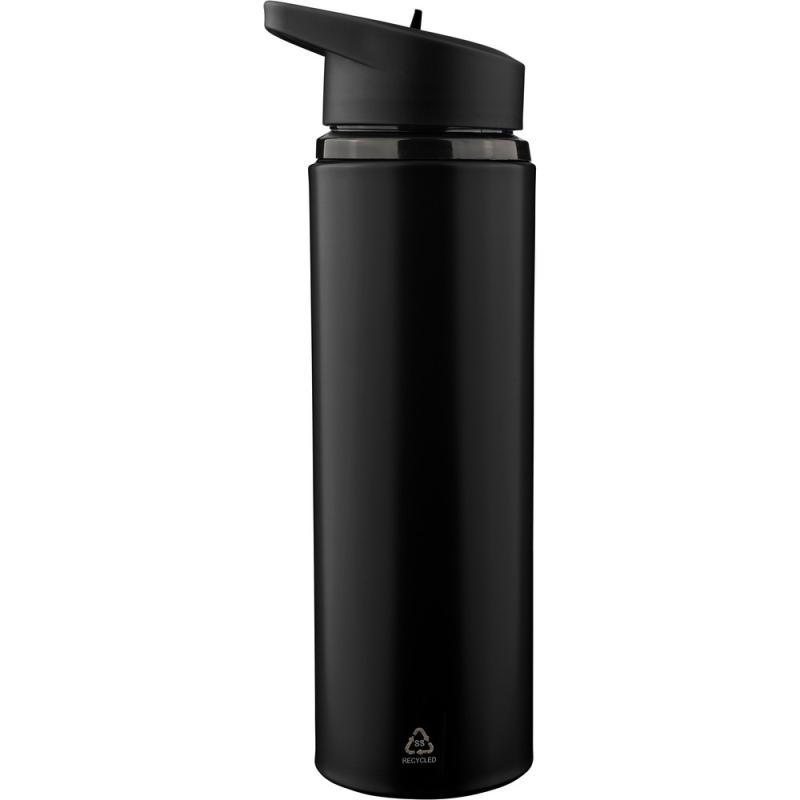 Butelka sportowa 500 ml, z uchwytem ułatwiającym przenoszenie, pojedyncza ścianka, składany ustnik ze słomką, ikona recyklingu na produkcie, zapakowana pojedynczo w brązowe kartonowe pudełko, produkt wykonany ze stali nierdzewnej 304 z recyklingu