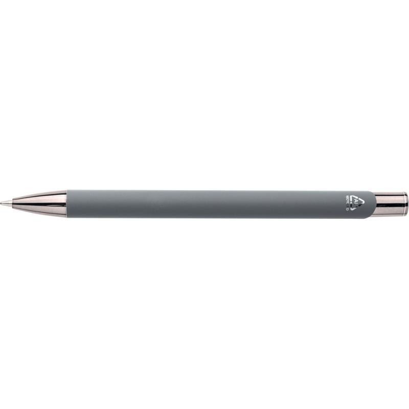 Długopis, metalowy klips, wkład w niebieskim kolorze, ikona recyklingu na produkcie, wystarcza na ok, 800 m pisania, produkt wykonany z ABS z recyklingu, aluminium z recyklingu i metalu