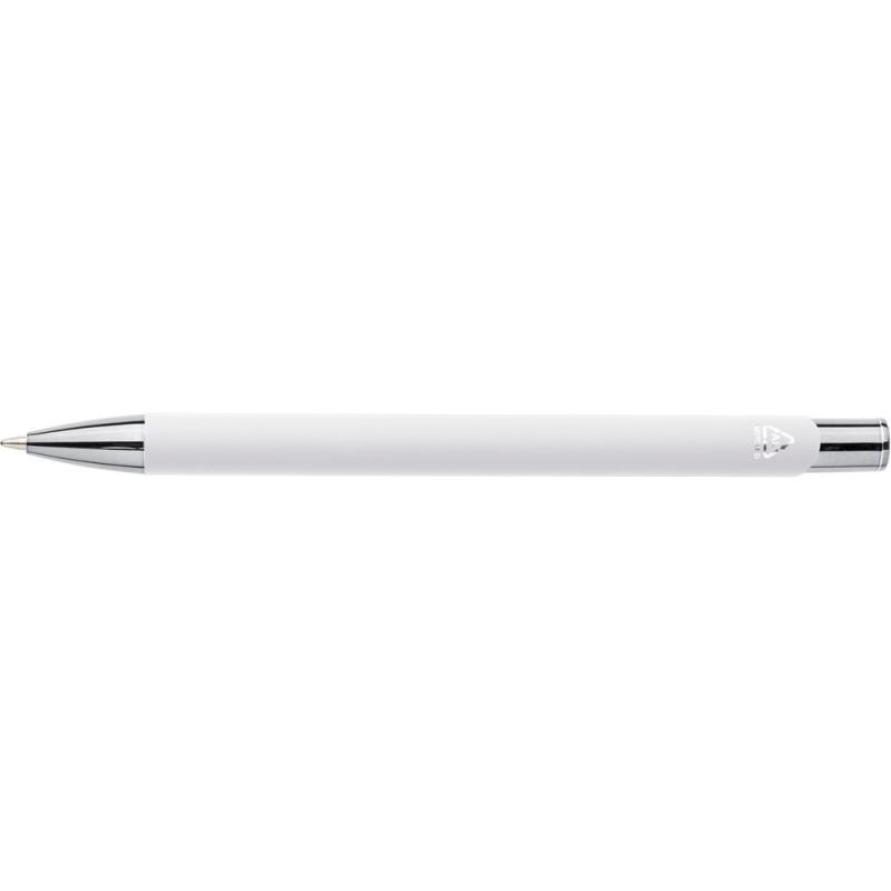 Długopis, metalowy klips, wkład w niebieskim kolorze, ikona recyklingu na produkcie, wystarcza na ok, 800 m pisania, produkt wykonany z ABS z recyklingu, aluminium z recyklingu i metalu