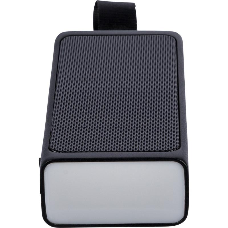 Głośnik bezprzewodowy 5W, metalowa siatka, uchwyt ułatwiający noszenie, latarka (lampka COB i LED), wejście 5v/500mA, BT5.4, bateria 500 mAh, zapakowany pojedynczo w brązowy kartonik, produkt wykonany z ABS z recyklingu, metalu i silikonu
