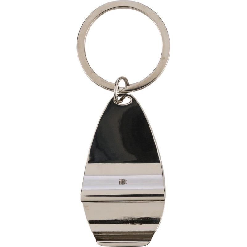 Brelok do kluczy, otwieracz do butelek, zapakowany w papierowy kartonik, produkt wykonany z metalu i bambusa