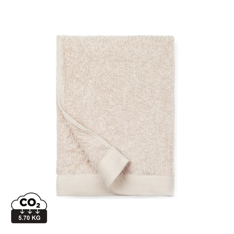 Ręcznik, miękki i solidny, wykonany w 68% z bawełny z certyfikatem BCI i 32% z Tencelu, który jest naturalnym włóknem pozyskiwanym z certyfikowanych lasów i który zapewnia doskonałą chłonność