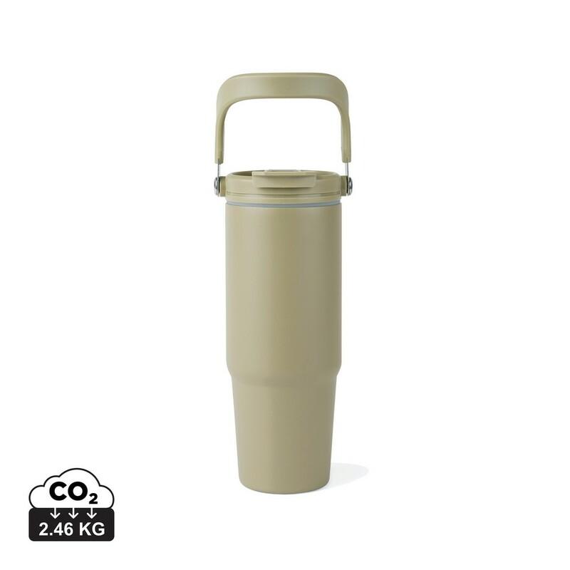 Butelka termiczna 880 ml, uchwyt, podwójne ścianki z próżnią pomiędzy, utrzymuje temperaturę napojów ciepłych do 3 godzin oraz zimnych do 16 godzin, wykonana ze stali nierdzewnej z recyklingu z certyfikatem RCS, całkowita zawartość materiałów z recyklingu obliczona w oparciu o wagę całkowitą przedmiotu: 65%, wyłącznie mycie ręczne