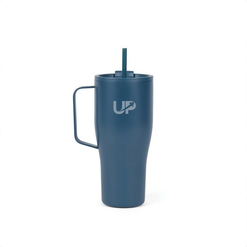 Butelka termiczna 880 ml, uchwyt, podwójne ścianki z próżnią pomiędzy, utrzymuje temperaturę napojów ciepłych do 3 godzin oraz zimnych do 16 godzin, wykonana ze stali nierdzewnej z recyklingu z certyfikatem RCS, całkowita zawartość materiałów z recyklingu obliczona w oparciu o wagę całkowitą przedmiotu: 65%, wyłącznie mycie ręczne