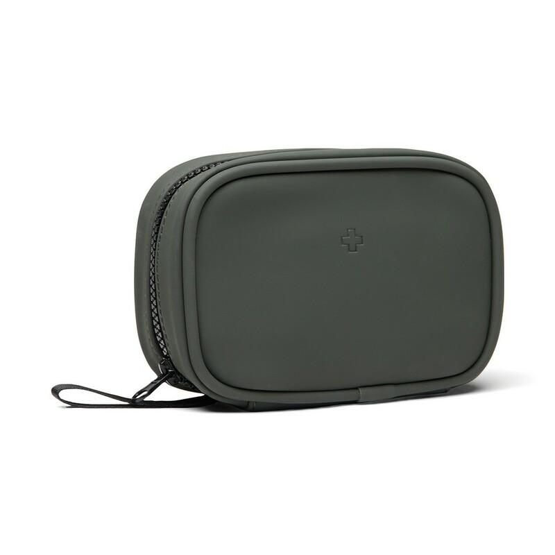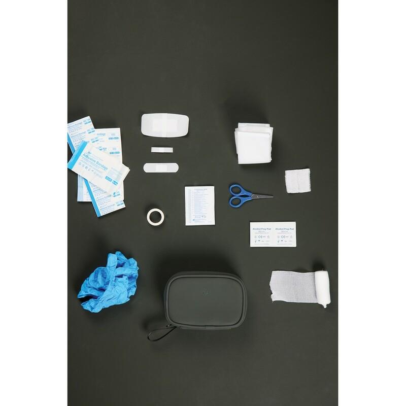 Apteczka, kompaktowa konstrukcja, zamykana na zamek błyskawiczny, wykonana z materiałów pochodzących z recyklingu z certyfikatem RCS, całkowita zawartość materiałów z recyklingu obliczona na podstawie wagi całkowitej przedmiotu: 23%