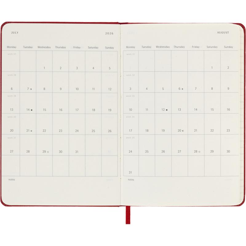 Kalendarz kieszonkowy (ok. A6, pocket) MOLESKINE, twarda okładka, dzienny (400 str.), zakładka i elastyczna opaska do zamykania