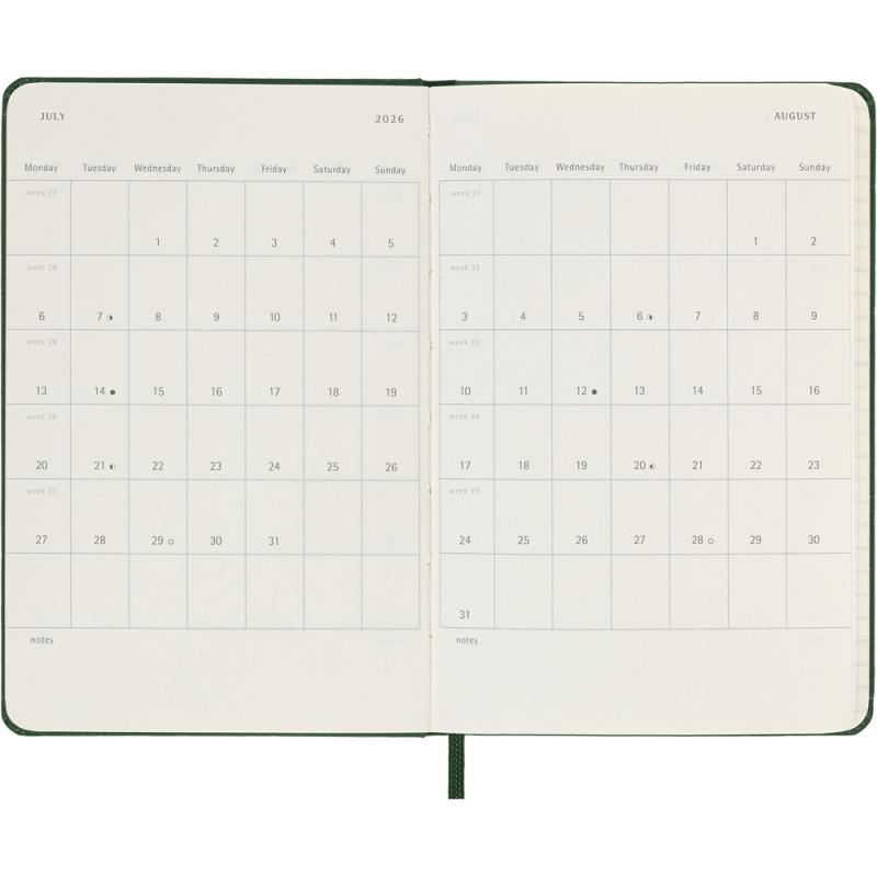 Kalendarz kieszonkowy (ok. A6, pocket) MOLESKINE, twarda okładka, dzienny (400 str.), zakładka i elastyczna opaska do zamykania