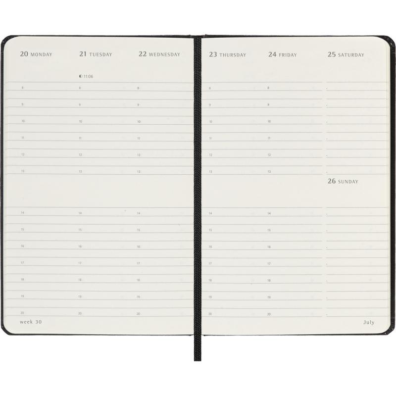 Kalendarz kieszonkowy (ok. A6, pocket) MOLESKINE, twarda okładka, tygodniowy, wertykalny (144 str.), zakładka i elastyczna opaska do zamykania