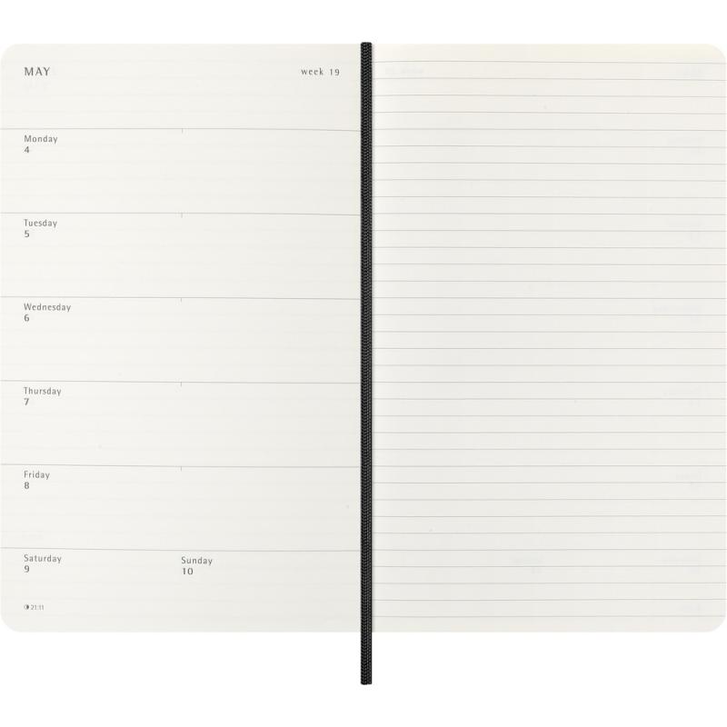 Kalendarz duży (ok. A5, large) MOLESKINE z notatnikiem, miękka okładka, tygodniowy (144 str.), zakładka i elastyczna opaska do zamykania
