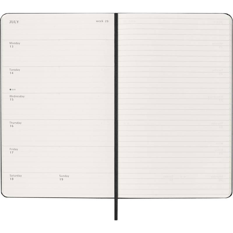 Kalendarz duży (ok. A5, large) MOLESKINE z notatnikiem, twarda okładka, tygodniowy (144 str.), zakładka i elastyczna opaska do zamykania