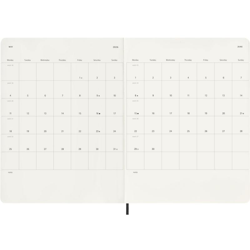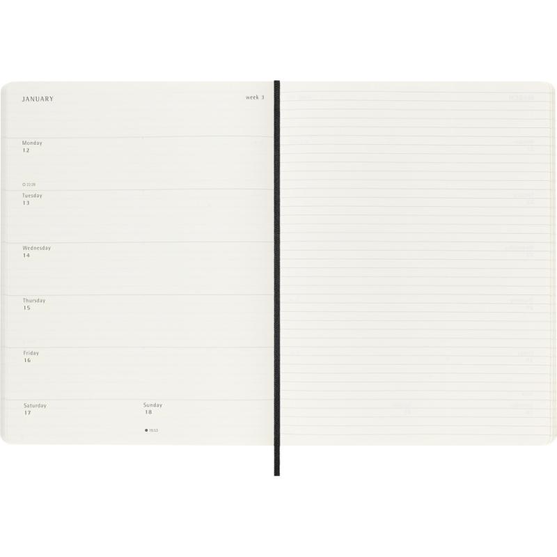Kalendarz XL (ok. B5) MOLESKINE z notatnikiem, miękka okładka, tygodniowy (144 str.), zakładka i elastyczna opaska do zamykania