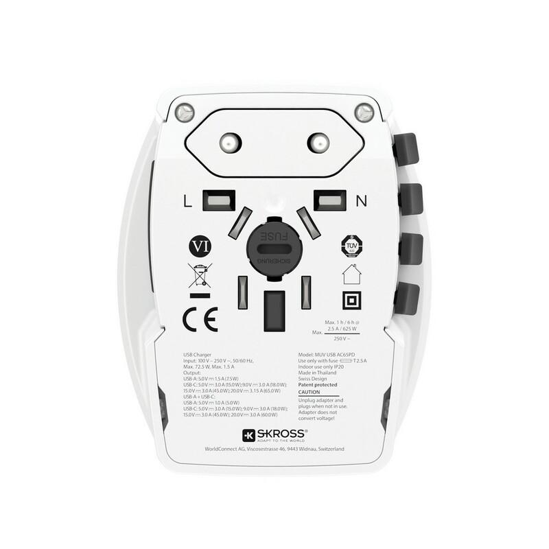 Uniwersalna ładowarka, adapter podróżny, moc ładowania 65W, kompaktowy rozmiar, wyjścia USB i USB-C, kompatybilny z ponad 200 krajami, kabel USB-C w komplecie